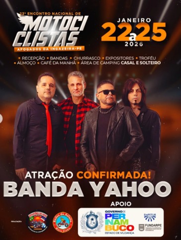 O 23º Encontro Nacional de Motociclistas de Afogados da Ingazeira já começa a ganhar forma e promete entrar para a história. Os Moto Clubes Dragões de Aço e Bodes do Asfalto, com o apoio do Governo do Estado de Pernambuco, confirmam mais uma grande atração para a edição de 2026, que vai movimentar a Capital do Pajeú.