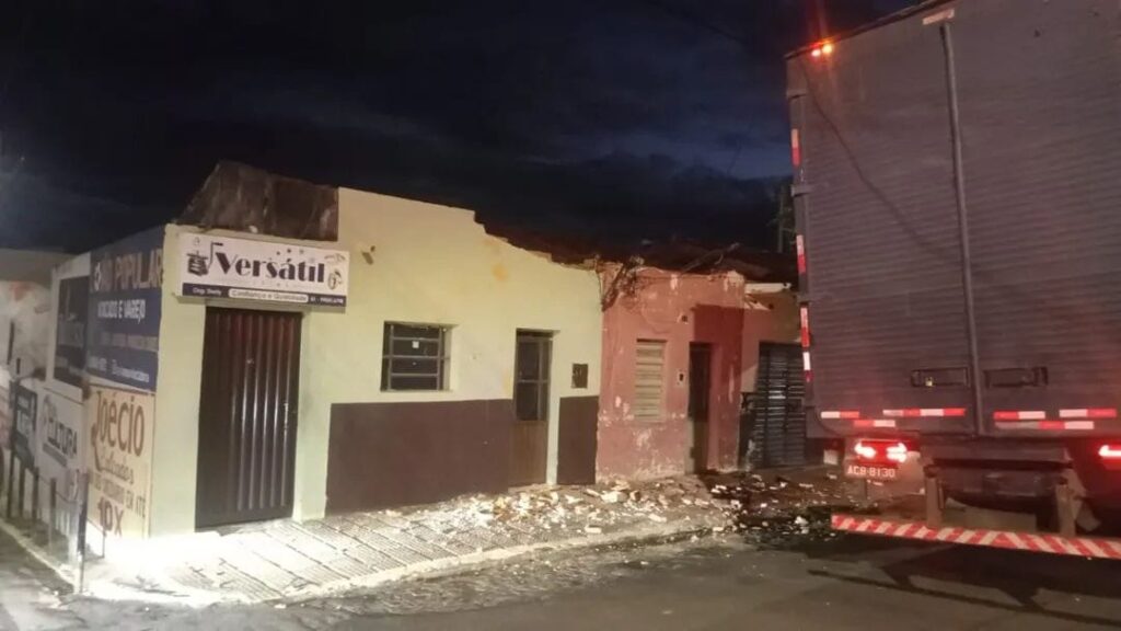 Segundo informações repassadas pelo condutor do veículo, ao transitar pela rua, um fio de energia elétrica ficou preso ao baú do caminhão, puxando uma cantoneira, o que acabou causando danos estruturais às paredes de duas casas.