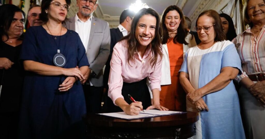 “Nos 21 dias de ativismo da luta contra a violência contra a mulher, Pernambuco lança política pública jamais vista no nosso Estado. Hoje, a gente assina um convênio para a construção de 30 centros de referência de acolhimento a mulheres vítimas de violência, para que a gente possa prevenir, acolher e preservar a vida dessas mulheres. Temos feito muitas parcerias com os municípios e avançamos agora para 77 municípios podendo fazer o programa Mães na Creche. É um programa que a gente garante qualificação profissional de mulheres, mães de crianças que estão na creche. O mais importante de tudo isso é a gente dizer que mulher em Pernambuco não está sozinha”, ressaltou a governadora Raquel Lyra, ao lado da vice-governadora Priscila Krause.