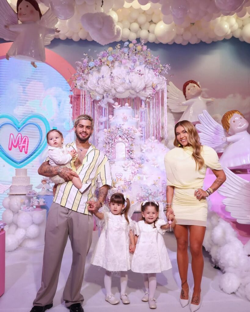 Em uma publicação feita nesta segunda-feira (2) nas redes sociais, Zé Felipe e Virginia Fonseca apareceram juntos em fotos mostrando os enfeites da segunda comemoração do aniversário de 4 anos da filha do ex-casal, Maria Alice. Com anjos e nuvens, a festa contou com cama elástica, bolo gigante e bar.